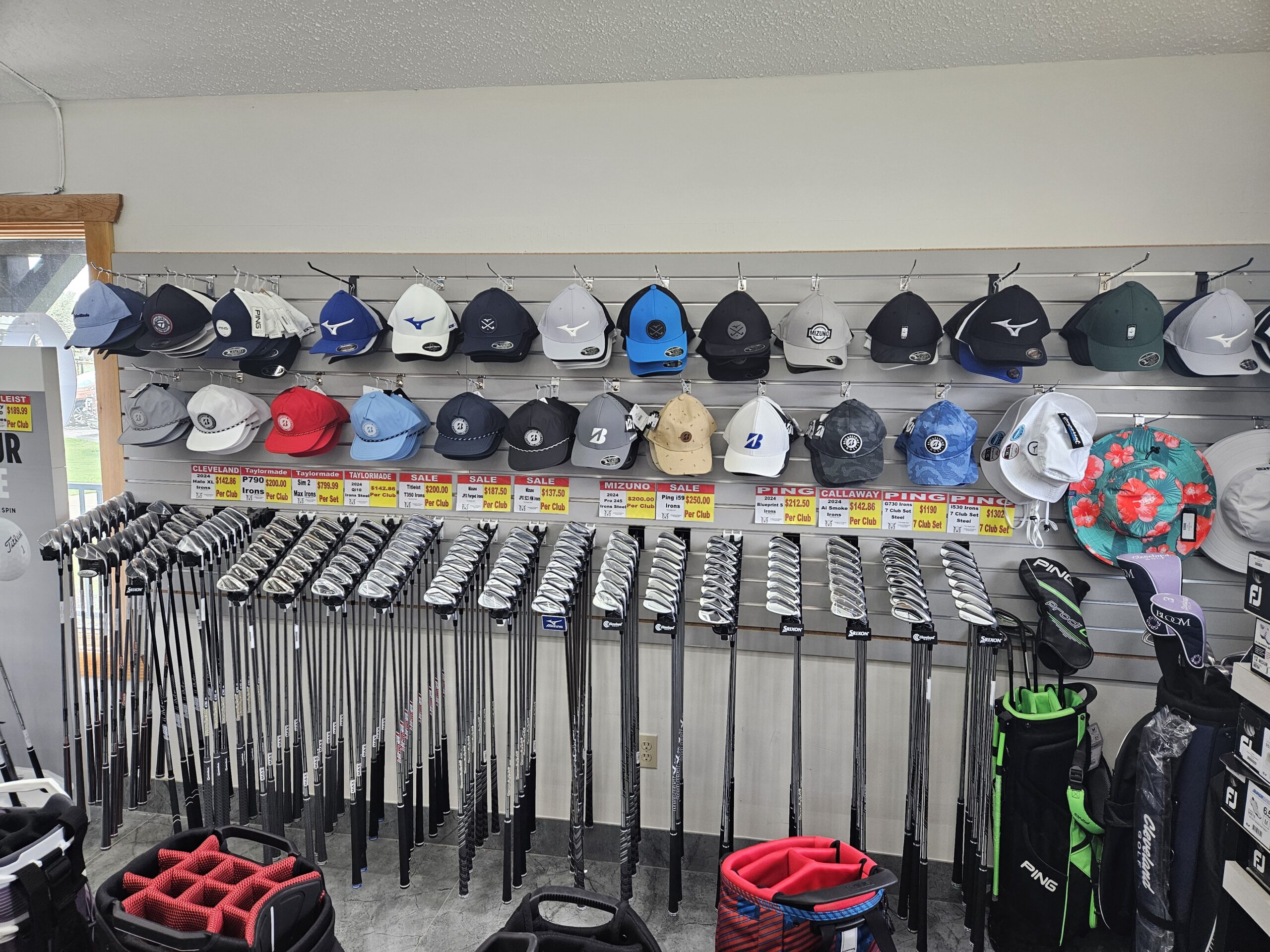 Our well-stocked, retail golf shop features the latest in pro-line equipment at the best prices in the area. Our golf shop is staffed with knowledgeable, trained professionals to help guide you and can answer any questions. We carry drivers, woods, irons, hybrids and putters, as well as balls, shoes, clothing and all accessories.
